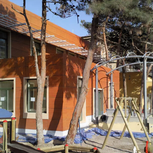Azerbaycan Anaokulu projesinde transparan cephe, kompozit panel kaplama, alüminyum doğrama ve kapı, fotosel kapı ile güneş kırıcı uygulamaları gerçekleştirilmiş olup proje Temmuz 2008’de tamamlanmıştır. Projenin konumu Bakü / Azerbaycan’dır.