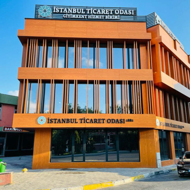 İstanbul Ticaret Odası Giyimkent projesinde kompakt panel, alüminyum doğrama ve paslanmaz tabela uygulamaları gerçekleştirilmiş olup proje 2022 yılında tamamlanmıştır. Projenin konumu Giyimkent / İstanbul’dur ve toplam uygulama alanı 1620 m²’dir.